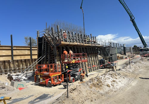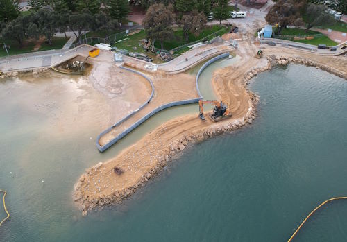 Construction of the bespoke curved estuary walls for the Mandurah circular estuary pool.